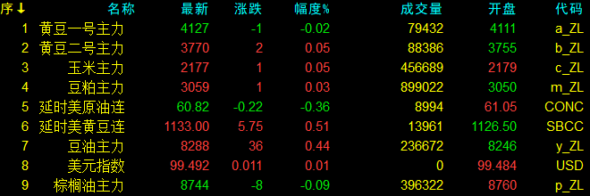 11月12日大連盤收盤動態及美盤動態