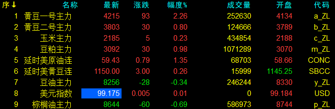 11月14日大連盤收盤動態及美盤動態