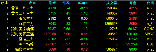 11月17日大連盤收盤動態及美盤動態