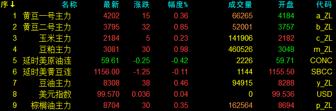 11月18日大連盤開盤動態及美盤動態
