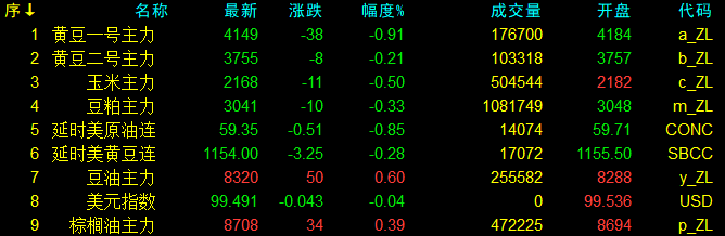 11月18日大連盤收盤動態及美盤動態