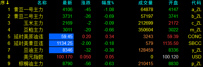 11月20日大連盤開盤動態及美盤動態
