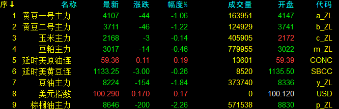 11月20日大連盤收盤動態及美盤動態