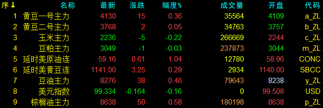12月1日大連盤開盤動態及美盤動態