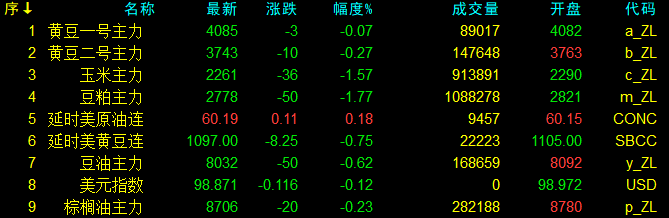 12月8日大連盤收盤動態及美盤動態