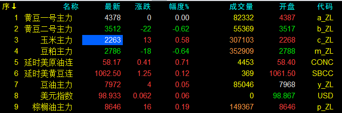 1月9日大連盤開盤動態及美盤動態