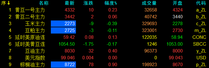 1月20日大連盤開盤動態及美盤動態