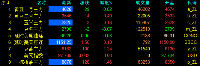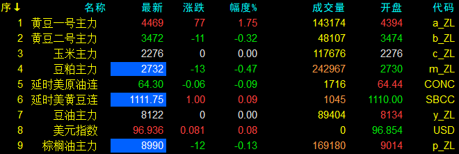 2月24日大連盤開盤動態及美盤動態