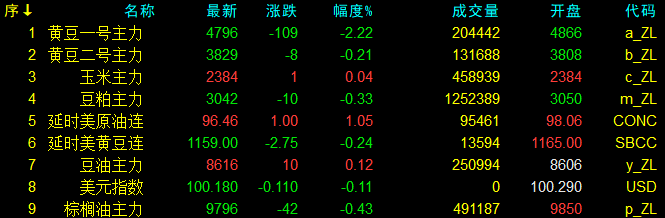 3月20日大連盤開盤動態及美盤動態