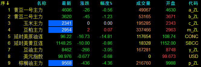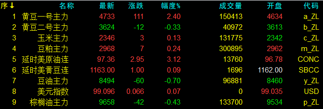4月9日大連盤開盤動態及美盤動態
