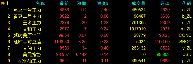 4月13日大連盤收盤動態及美盤動態