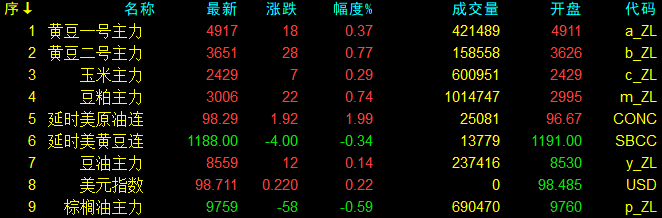 4月28日大連盤收盤動態及美盤動態