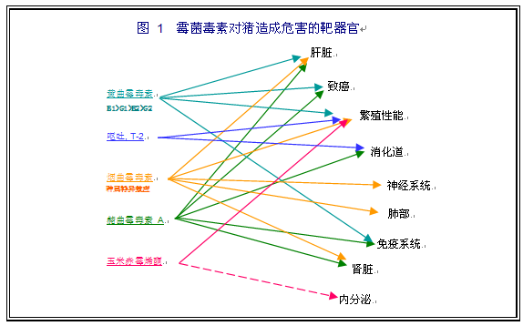8. 不同霉菌毒素對豬造成危害的靶器官(見圖1):