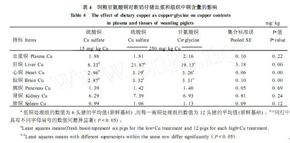 綜上所述,甘氨酸銅對斷奶仔豬的生物學活性與無機硫酸銅無明顯差異,但是否還有更靈敏的指標能檢測出二者之間生物活性的差異性,則有待進一步深入研究。qgN中國飼料行業信息網-立足飼料,服務畜牧
