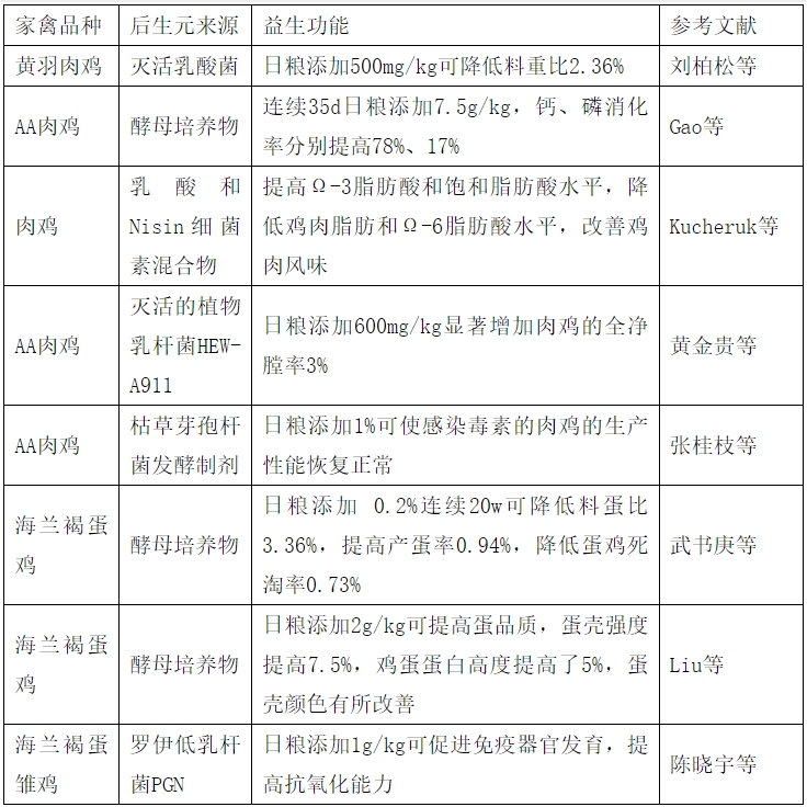 表1后生元在家禽生產中的應用