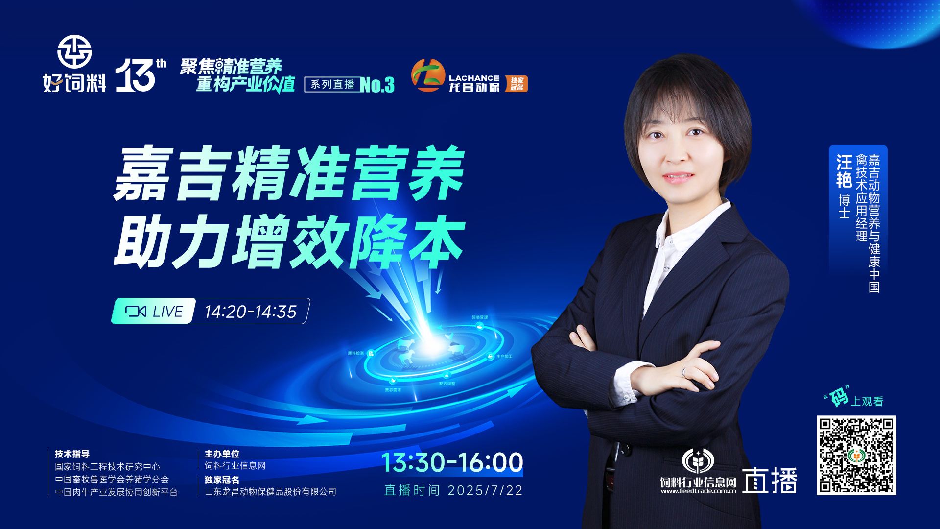基于此,“好飼料•第13季”活動組委會分別在7月8日、15日和22日連續舉辦了三場以“聚焦精準營養 重構產業價值”為主題的系列直播活動,邀請業內優秀一線技術專家齊聚云端,匯聚行業智慧,共同探索技術創新與產業價值提升的實踐路徑。