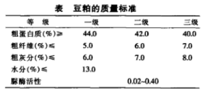 豆粕的質量標準見下表。