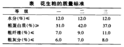 花生粕的質量標準見下表。