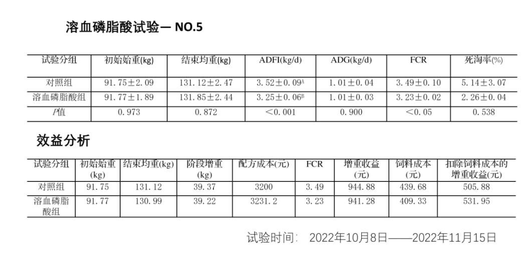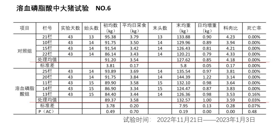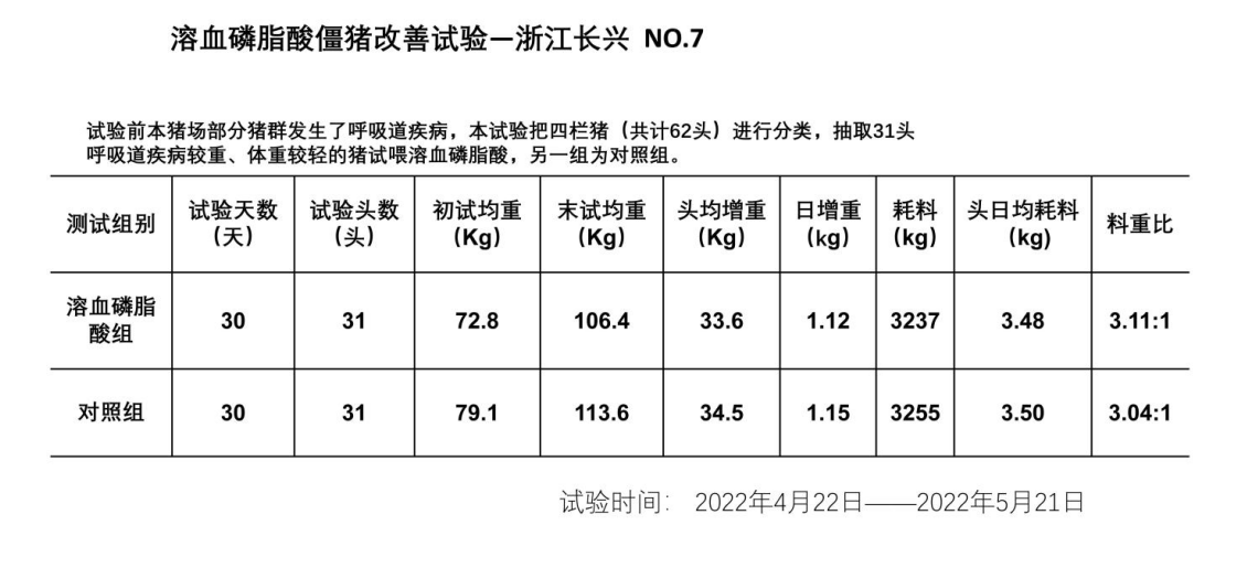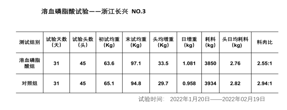 綜上所述,“瘦禸太”它含有的6%溶血磷脂,是一種更好的乳化劑,既能夠促進對脂肪和能量的消化及吸收,還能增強細胞膜的通透性,能增強對其它營養物質的消化吸收,瘦禸太的另外一種成分溶血磷脂酸,它第一個功能能夠激活對DNA的復制從而促進細胞的有絲分裂,加快動物生長,第二個功能就是它能促進腸道組織上皮細胞的一個分裂及增殖,從而提高腸絨毛膜上皮組織的厚度,促進對營養物質的一個吸收,所以說我們這個瘦禸太,它不但是一個生長促進劑,還是一個全方位的營養吸收促進劑,它不但能促進對脂肪的吸收,能量的吸收,還能促進對蛋白、氨基酸、維生素及其它小分子營養物質的一個吸收,溶血磷脂酸有一個更炫的功能就是能提高肉的品質。所以說我們在飼料中添加“瘦禸太”后,可以降低飼料中能量及蛋白的用量,從而降低飼料成本;降低料肉比、提高日增重;提高肉體品質。表一: