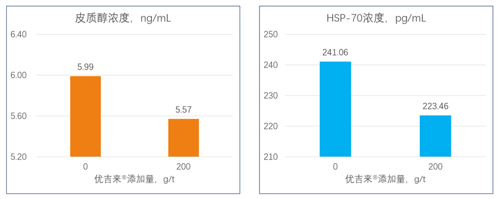 X.L. Chen(2020)研究表明,日糧中補充優吉來®有助于降低血液中的皮質醇和熱休克蛋白(HSP-70)濃度。