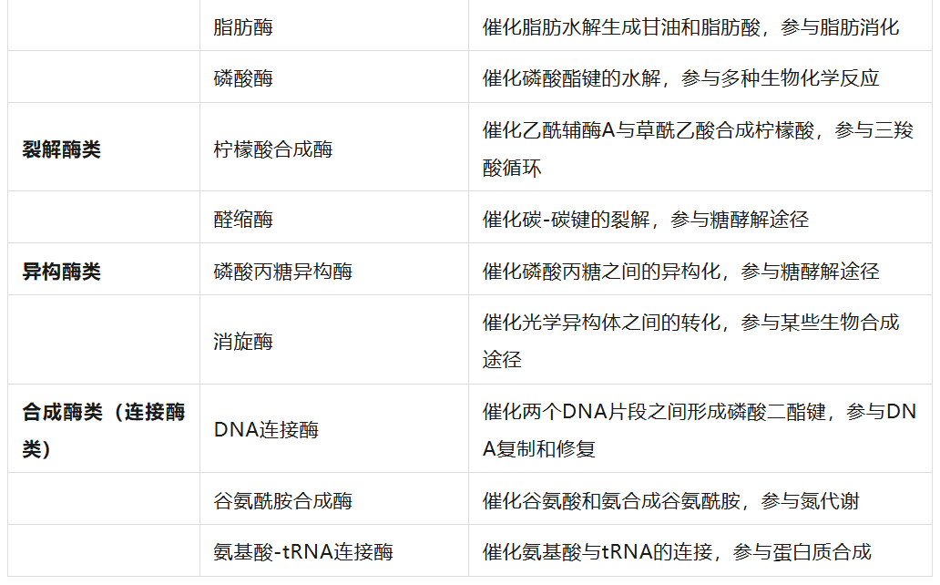 19種酶的分類及功能