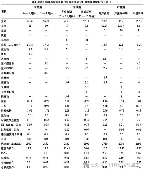 4 蛋雞低蛋白低豆粕多元化日糧推薦典型配方