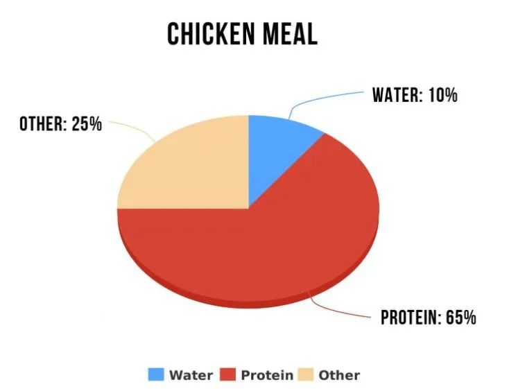 AAFCO對雞肉粉的標準是:雞肉粉是由潔凈的帶骨或不帶骨的肉和皮膚組合而成的干制產品,由禽肉整體的部分或其組合而成,不包括羽毛、頭、腳和內臟,適宜用于動物食品。