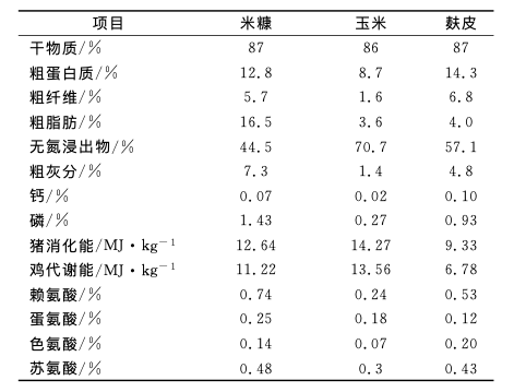 表1 米糠粕和米糠、玉米、麩皮的主要營養成分