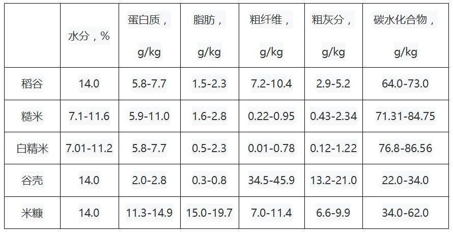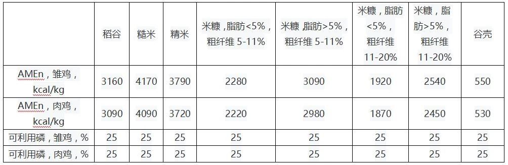 表5:稻谷及相關產品對禽的飼喂價值(干物質)