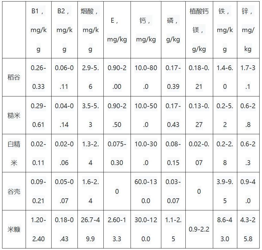 數據來源:Effect of Processing on Nutritional Value of Rice (Oryza sativa) 2011