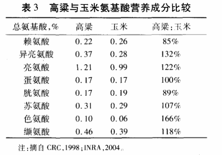 2.2 高粱與玉米氨基酸營養成分比較(見表3)