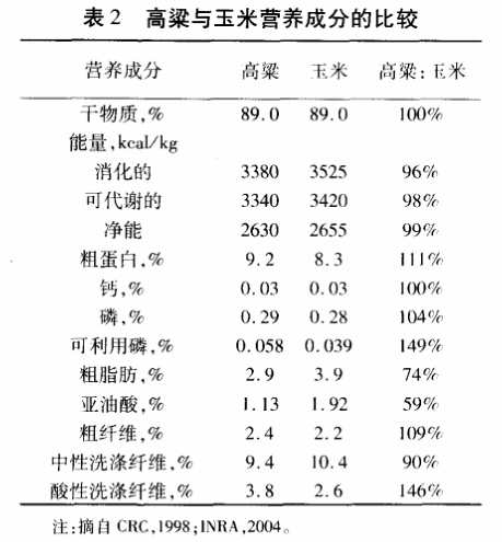 2.1 高梁與玉米營養成分的比較( 見表 2)