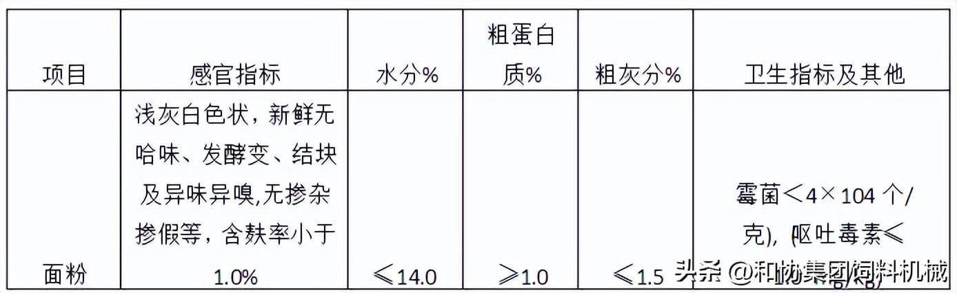 營養價值:面粉有效能值高,如其消化能(豬)為13~14MJ/kg,代謝能(雞)為12~13MJ/kg,產奶凈能為8.5~9.0MJ/kg。面粉的粗蛋白質含量居谷實類之首位,在12%以上,有的達14%以上,但必需氨基酸尤其是賴氨酸不足,因而面粉蛋白質品質較差。面粉的粗脂肪含量低(約1.7~1.9%)。