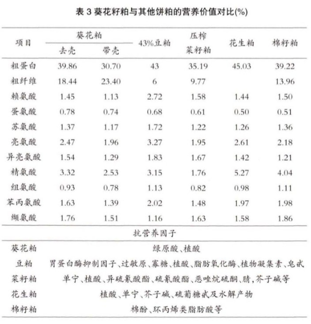 1.2 葵花籽粕與其他餅粕營養價值對比