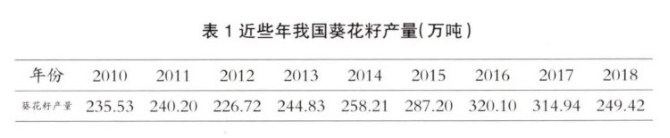 向日葵是我國重要油料作物之一,主要種植在東北和西北一帶。作為向日葵生產大國,我國已經實現了葵花籽油提取工業化生產。據國家統計局數據顯示,我國近些年葵花籽的產量較大(如表1所示)。葵花籽粕也稱為葵花粕,是指葵花籽經預壓榨或直接浸出法榨取油脂后的物質。優質的葵花籽粕大多呈粉狀或碎片狀,色澤均勻,無霉變、結塊及異味,具有葵花籽特有的芳香味??ㄗ哑傻木C合利用也有大量的試驗研究。同時,葵花籽粕作為重要的蛋白飼用原料在動物飼料中也得到廣泛使用。