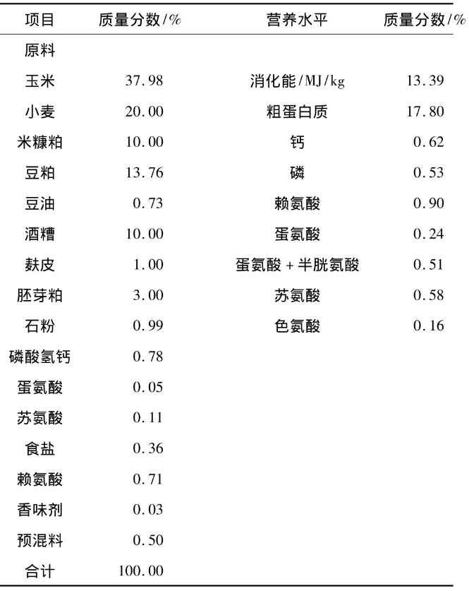 表1 基礎飼糧組成及營養水平(風干基礎)/%