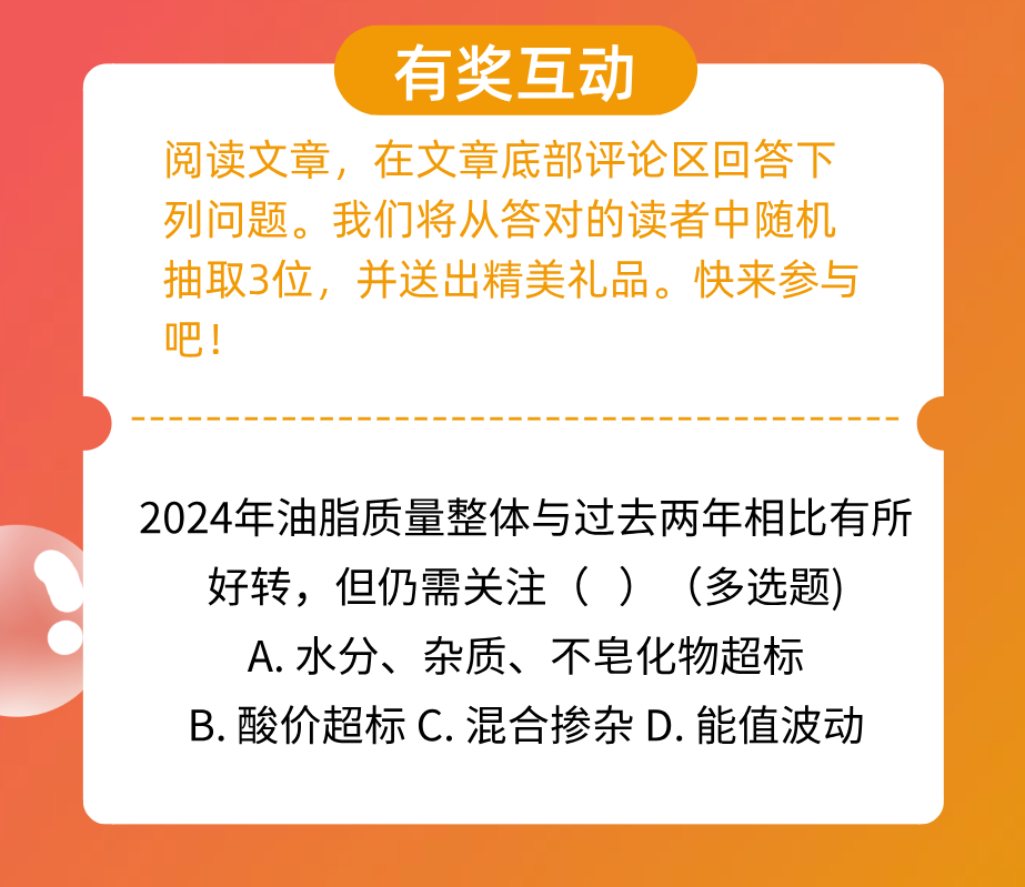 對比2022年和2023年的油脂數據,2024年油脂的質量整體優于過去兩年。