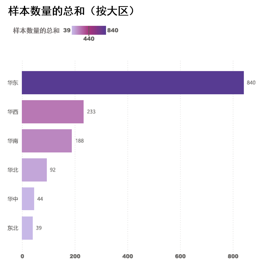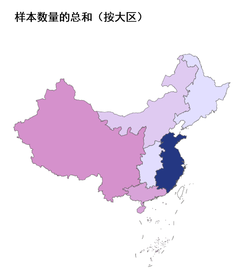 華北區域、華中區域和東北區域的樣品較少,下文的數據分析統一歸為其它區域,占比12.2%。