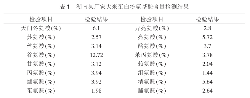 2.1 大米蛋白粉的營養含量