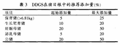 如前所述,DDGS由于其低廉的價格對于降低豬飼料成本是十分重要的。美國生產的DDGS也將進入我們國內市場,表3是美國DDGS的推薦使用量(BobThaler ,2003 )。