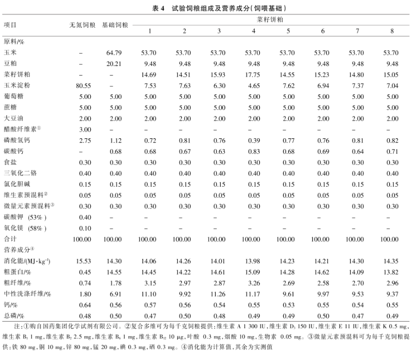 1.6.2菜籽餅粕氨基酸回腸消化率基礎糧和試驗飼糧中氨基酸回腸表觀消化率按指示劑法計算。