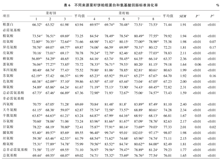 2.1不同來源菜籽餅粕氨基酸回腸表觀消化率的比較