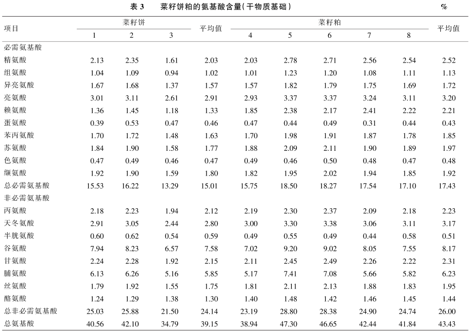 采用SAS9.1的GLM模型對數據進行單因素方差分析,差異顯著時進行Duncan's法多重比較,運用T-test程序分析高溫壓榨和預壓-浸提2種工藝對菜籽餅粕氨基酸回腸消化率的影響,以P<0.05為差異顯著標準,P<0.01為差異極顯著標準。