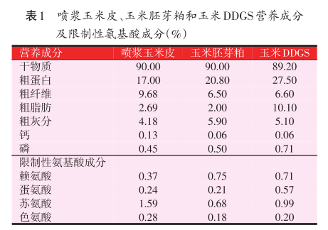 2 噴漿玉米皮、玉米胚芽粕和玉米DDGS的營養特性