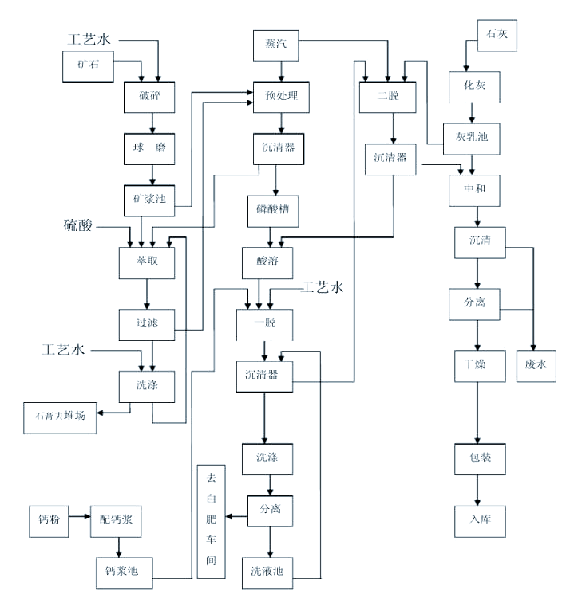 首先,將硫酸或鹽酸與磷礦石進行反應,通過分解磷礦石來獲取低濃度的萃取磷酸。接著,利用石灰乳進行中和沉淀,以脫除氟化物,從而得到磷酸氫鈣。隨后,經過除雜、烘干和粉碎等工序,最終得到符合標準的飼料級磷酸氫鈣。