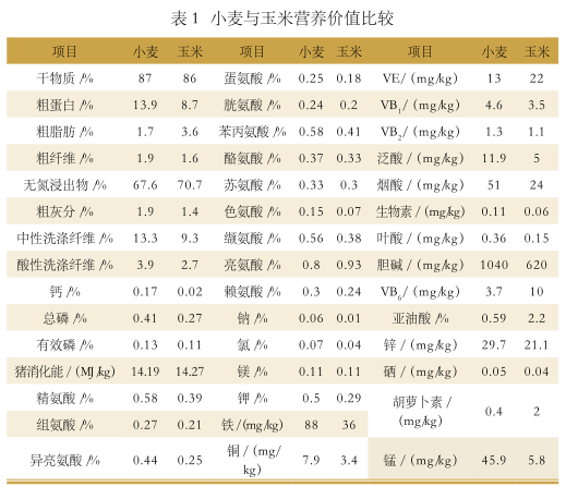 能量飼料原料在豬飼料配方中占據大部分的空間,同時其成本也較高,我國普遍采用美國的配方類型,豬日糧中使用大量玉米。隨著近年來玉米資源的相對短缺,玉米價格的一路暴漲;玉米容易發生霉變,產生霉菌毒素,對豬有很大危害。于是,如何增加相對低成本的小麥替代玉米在豬飼料中的使用成為關注的重點。眾多研究表明,只要在飼料中合理使用小麥,可以帶來非常好的經濟效益。本文在總結前人研究的基礎上,結合生產實際,探討小麥的使用方法及小麥替代玉米后的使用注意事項,為豬飼料中使用小麥提供理論參考。