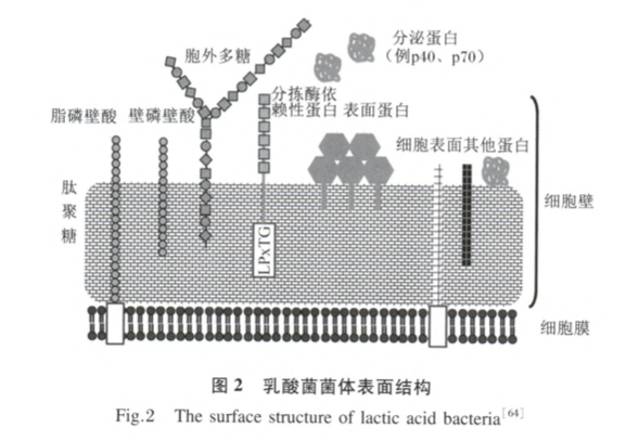 EPS是乳酸菌在生長代謝過程中分泌到細胞壁外的一類糖類化合物,根據其分布位置可分為2種形式:一種緊密依附在細菌表面形成莢膜稱為莢膜多糖(capsular polysaccharide,CPS),一種松散地分布在細菌表面稱為黏液多糖(slime polysaccharides,SPS)。鼠李糖乳桿菌GG突變株產生CPS的能力下降,反而提高了鼠李糖乳桿菌的黏附能力和生物膜形成能力。相反,高水平的CPS可以保護鼠李糖乳桿菌GG抵抗腸道先天性免疫因子,如鼠李糖乳桿菌LL-37。 格氏乳桿菌Shirota的胞外多糖抑制巨噬細胞促炎性免疫反應。由于CPS的糖原組成復雜,妨礙了CPS相關信號通路的研究。就目前而言,CPS在宿主免疫調節中的作用仍不明確。