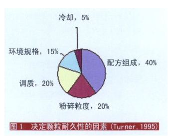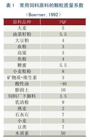一個科學的配方,既要考慮動物的營養需求,又要從原料特性考慮配方組成對制粒質量的影響。Boerner(1992)推薦一個飼料配方的顆粒質量系數至少應大于 4.7。