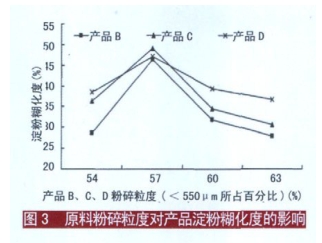 水分和溫度是淀粉煳化的兩個必要條件,而水分含量尤為重要。原料的含水量不僅影響粉碎效果,而且影響制粒工藝過程中的調質效果。在蒸汽調質的過程中,要以蒸汽的形式添加 3%~5%的水,以水蒸汽的形式每增加1%的水分,物料的溫度便會增加15℃(Turner,1995)。