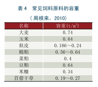 原料的容重越大,在制粒時越易于成形(殷波等,2001)。凡原料的容重小于 0.33t/m為輕質原料,而大于 0.4t/m’為重質原料(見表 4)。輕質原料結構松散,在壓粒時產量低、電耗較高、硬度低、含粉率偏高。重質原料的制粒效果較好,硬度較高,含粉率低。